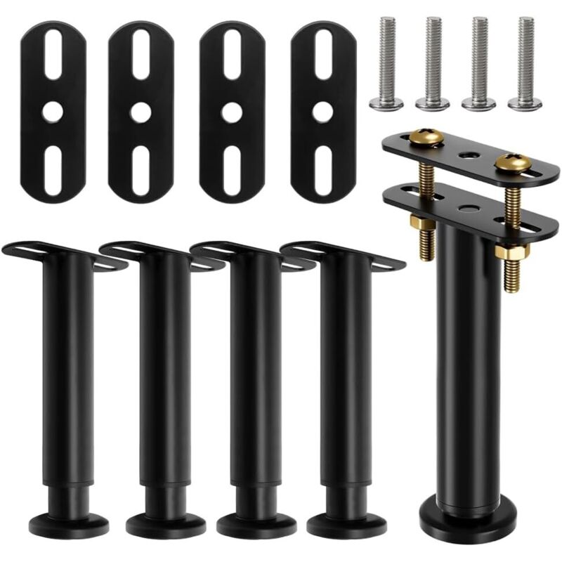 4pcs Pied De Lit à Visser Metal Pieds Pour Sommier à Lattes Universel Pieds De Meubles Noir, Pieds De Sommier Sans Perçage, Reglable Hauteur:
