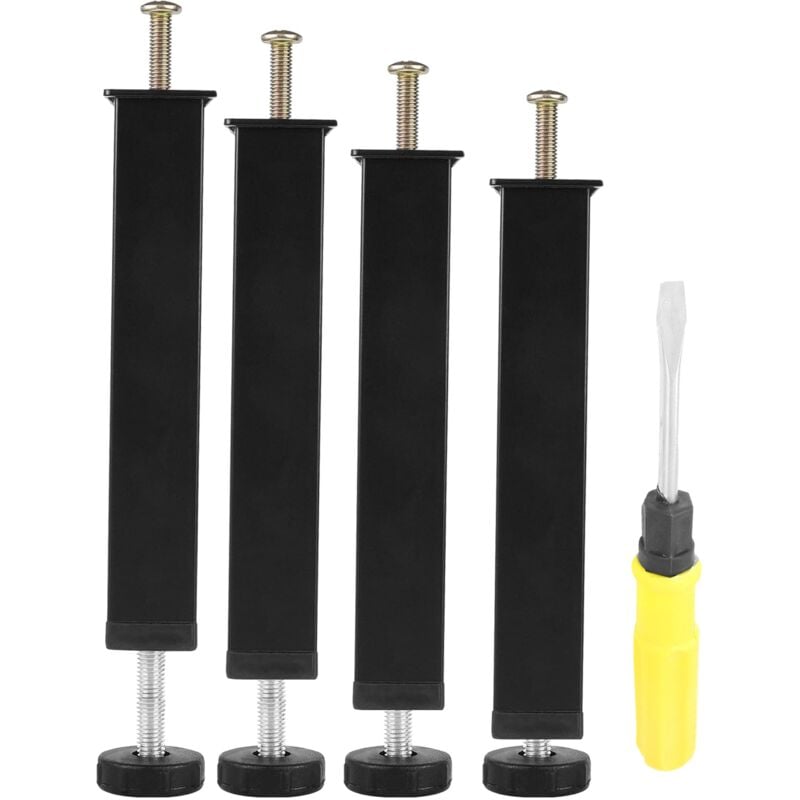 Pied de Lit 25 cm à Visser 4 Pcs Pied Sommier à Lattes Réglable Pieds Metallique Noir Métal Support de Lit Pied de Meuble