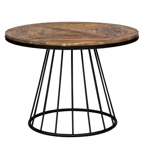 Table à manger extensible ronde YUNA 4-8 pers plateau bois et pied filaire en métal 110 - 150 cm