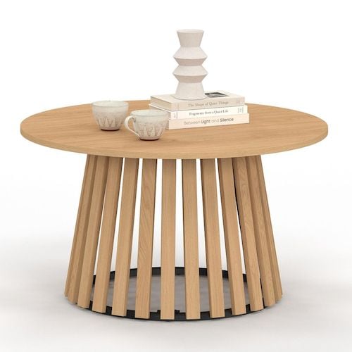 Table basse ronde CARMEN 70 cm pied bois en lattes et plateau bois