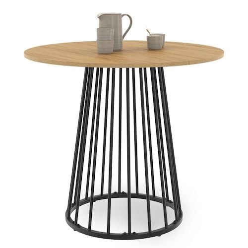 Table à manger ronde YUNA 4 personnes plateau bois et pied filaire en métal noir 80 cm