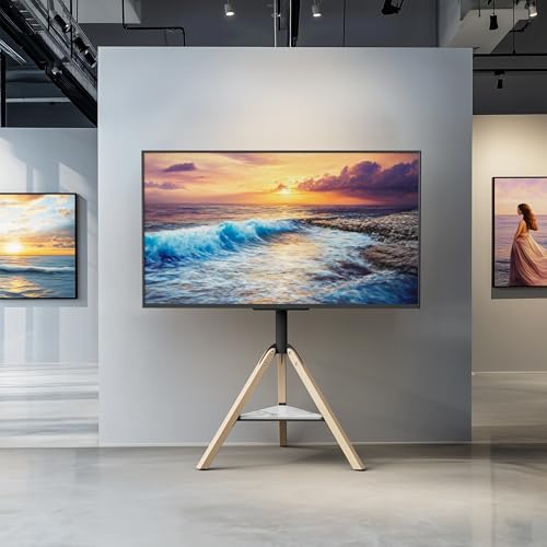 FITUEYES Design Support TV roulettes/Pied pour TV 43 45 50 55 60 65 70 75 78 Fait en Bois de Hêtre Hauteur Réglable Angle Réglable ±30°Charge 60KG Série Cantor