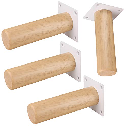 Pied de Table Pied Meuble Lot de 4 Pieds de Meuble en Bois d'hévéa Massif, Pieds de Meuble TV Ronds, Pieds de canapé, Pieds de Meubles Modernes, Pieds de Table Basse, Pieds de Rechange brico