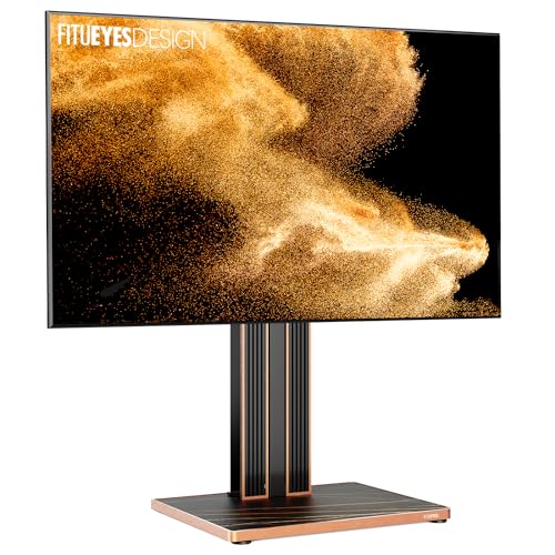 FITUEYES Design Support TV sur Pied pour Ecran de 55 à 88 Pouces Hauteur Réglable Meuble TV en Bois Massif Pivotant Charge Max 60kg Angle Adjustable ±30° Série Zen