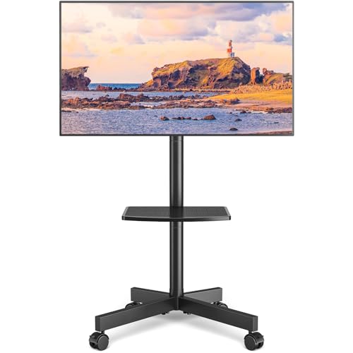 RFIVER Support TV sur Pied Chariot TV Meuble Télé Support avec Roulette Pied de 27 à 60 Pouces, Mobile TV Pivotant et Réglable en Hauteur, jusqu'à 40 kg, Max VESA 400x400 mm