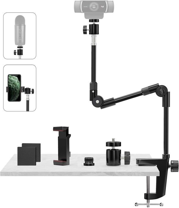 Support Webcam avec Support Téléphone & Vis 5/8"" 22"" Support Videoprojecteur Flexible,Pied Micro de Bureau Col de Cygne pour Logitech C922 C615 Brio 4K GoPro Hero Blue Yeti Snowball Ice,etc.