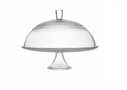 DRW Assiette à gâteau avec couvercle en verre, base avec bord décoratif, piédestal élégant, 32 cm