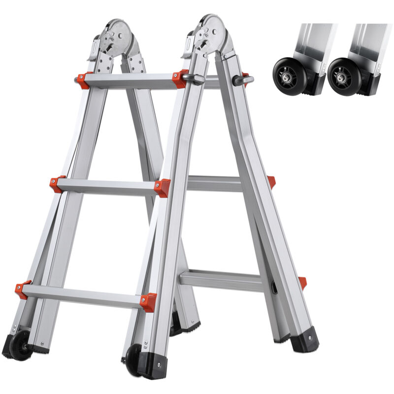 VEVOR Echelle telescopique a cadre en A, echelle extensible compacte en aluminium de 15 pieds, echelle de camping-car pliable portable multifonction,