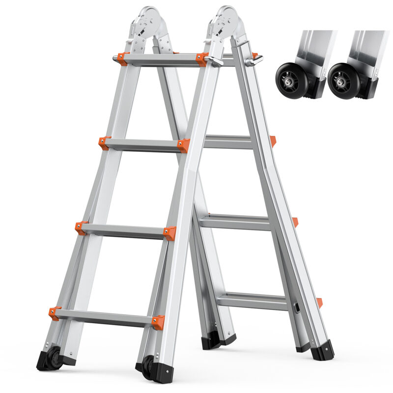 VEVOR Echelle telescopique a cadre en A, echelle extensible compacte en aluminium de 13 pieds, echelle de camping-car pliable portable multifonction,