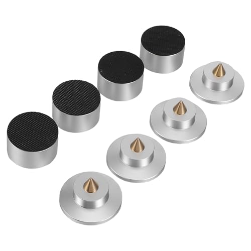 NUOBESTY Lot de 4 Pointes D’Isolation pour Enceintes HiFi en Métal Argenté, Coussinets Anti-Vibrations Amortissants pour Pieds D’Enceinte Bibliothèque, Accessoires Audio Vibrations
