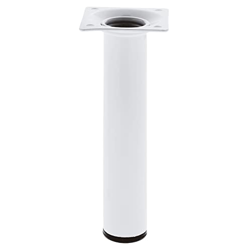 Amig - Lot de 4 Pieds Ronds pour Meuble - Ø3 x 20 cm - Acier - pour Tables Basses, Tables de Chevet, Commodes - Embout Anti-Rayures - Résistants - Blanc - Visserie Incluse