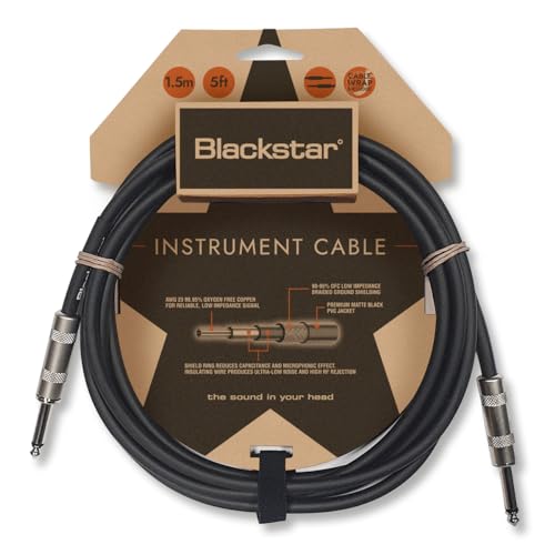 Blackstar Câble d'instrument 1,5 m (5 pieds) Jack droit ¼" vers Jack droit ¼", pour basse/guitare électrique/électro-acoustique/clavier/ampli