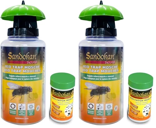 Sandokan Bio Piège à Mouches et Insectes avec Attractif, réutilisable pour Une Utilisation en extérieur (Lot de 2)