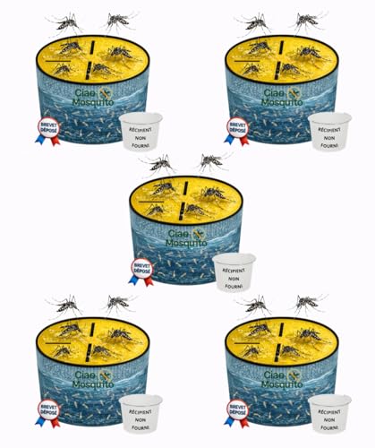 Piège à Moustiques sans Récipient – Lot de 5 Kits Anti Moustique Tigre & Larves – Solution Écologique Extérieur Jardin Terrasse – Autocollants + Filet + Flotteur par Kit – Ciao Mosquito®