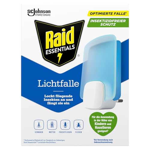 Raid Essentials Piège LED Anti-Mouches, Anti-Mouches et Mites, sans Insecticide, sans Danger pour Toute la Famille, sans Odeur et sans résidus, Usage intérieur, 1 Appareil et 1 pièce de Rechange.