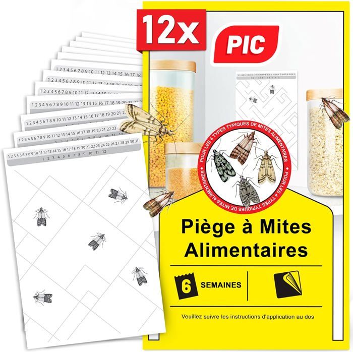 PIC Piéges à Mites Alimentaires - 12x Anti Mites Alimentaires - Piege Mites Alimentaires Efficace pour détecter Les infestations de Mites Alimentaires pour la Cuisine et Les magasins