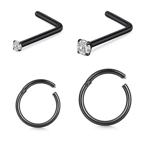FIOROYAL 20G Piercing Nez en Acier Chirurgical,L Forme Percing au Nez Plaqué Or 14K,18G Clicker Piercing Nez Anneaux pour Femme Homme,Piercing Helix Septum Anneau Argent Bijoux Femme