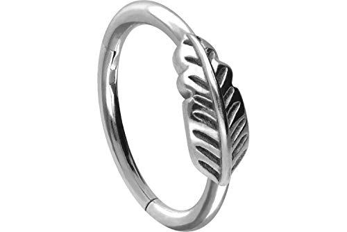 PIERCINGLINE Piercing anneau segmenté en acier chirurgical | Plume | Piercing Nez Septum Oreille Helix Tragus | Couleur et taille au choix, Acier inoxydable