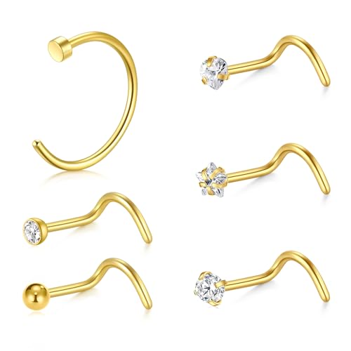 FIOROYAL 20G Piercing Nez en Acier Chirurgical,Vis Percing au Nez Plaqué Or 14K,18G Clicker Piercing Nez Anneaux pour Femme Homme,Piercing Helix Septum Anneau Or Bijoux Femme