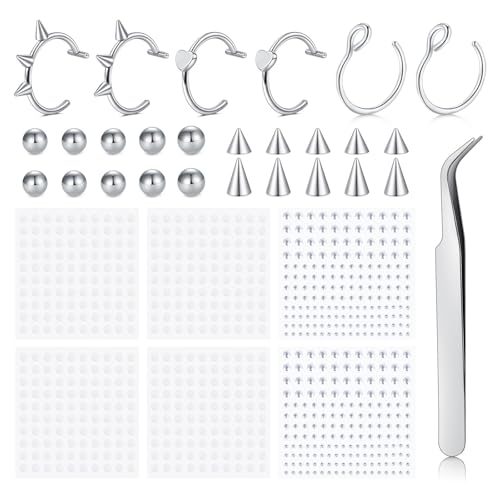 Yolev 9 Pièces Faux Piercing au Nez Anneau Cerceau en Acier Inoxydable Nez Cerceau pour Lèvre Artificielle Septum Piercing Nez Anneau Ensemble Non Perforé Lèvre Anneau Piercing Nez Sans Trou