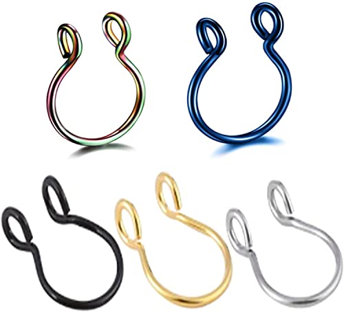 PULABO Paquet de 5 Faux Anneaux de Nez, Acier au Titane Faux Piercing Bijoux Faux Nez Anneau Cerceau pour Faux lèvre Septum Nez Anneau Ensemble élégant