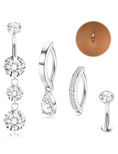 LQIOACU 4 Pièces Piercing nombril, Percing au nombril, Acier chirurgical, Arcade, Anneau, 1.6 * 10mm