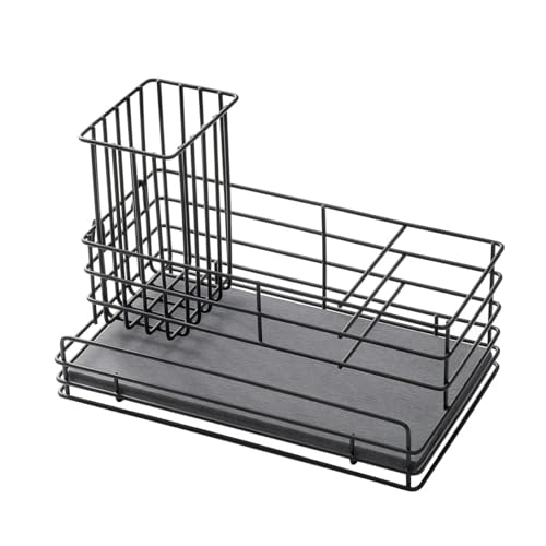 Support d'évier avec plateau en pierre de diatomite, organisateur d'éponge de cuisine pour comptoir, porte-brosse amovible et tapis à séchage rapide pour outils de vaisselle, noir