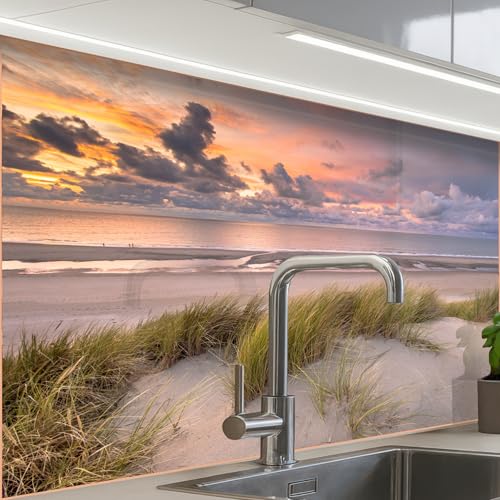KitchenYeah© Credence Cuisine Adhesive 60x200 cm Protege Mur Revetement Mural Adhesif Parement Interieur À Coller Plaque Plastique Rigide Dune - Plantes - Coucher de soleil - Plage - Mer