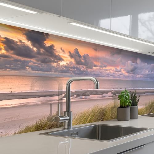 KitchenYeah© Credence Cuisine Adhesive 60x200 cm Protege Mur Revetement Mural Adhesif Parement Interieur À Coller Plaque Plastique Rigide Coucher de soleil - Dune - Plage - Plantes - Mer