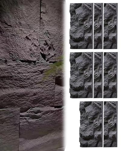 Elitix Panneaux Muraux 3D Revêtement Mural en Imitation Pierre Noire pour Salle de Bain Et Terrasse, Panneaux de Parement Extérieur, Décoration Murale 3D Artificielle, Revêtement Texturé(8 pcs)