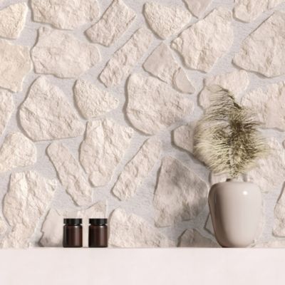 Panneau mural de salle de bains l.100 x H.255 cm, effet parement pierre beige, Schulte DécoDesign