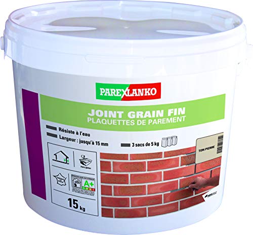 Parexlanko - Joint Grain Fin - Ton pierre - Joints de plaquettes, briquettes et pierres de parement - Mur intérieur et extérieur - Jusqu’à 15 mm - 15kg