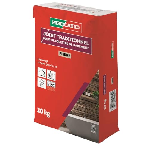 PAREXLANKO - Joint traditionnel pour plaquette de parement - Pierre - Joints jusqu’à 3 cm de large sur tous types de plaquettes, briquettes et pierres de parement - Murs intérieurs et extérieurs- 20kg