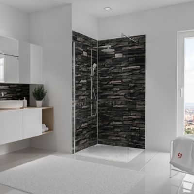 Panneau mural de salle de bains l.100 x H.255 cm, effet parement pierre gris, Schulte Décodesign vendu par 2