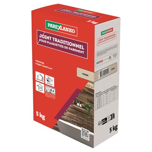 PAREXLANKO - Joint traditionnel pour plaquette de parement - Pierre - Joints jusqu’à 3 cm de large sur tous types de plaquettes, briquettes et pierres de parement - Murs intérieurs et extérieurs - 5kg