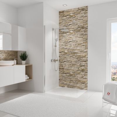 Panneau mural de salle de bains l.100 x H.210 cm, effet parement pierre beige, Schulte DécoDesign