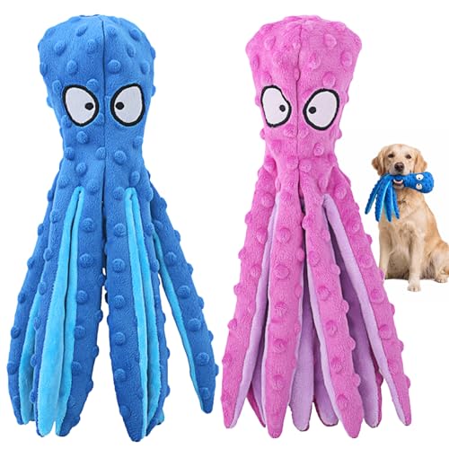 Whiskerspot Jouet pour chien en forme de pieuvre écologique en peluche durable sans rembourrage Bleu