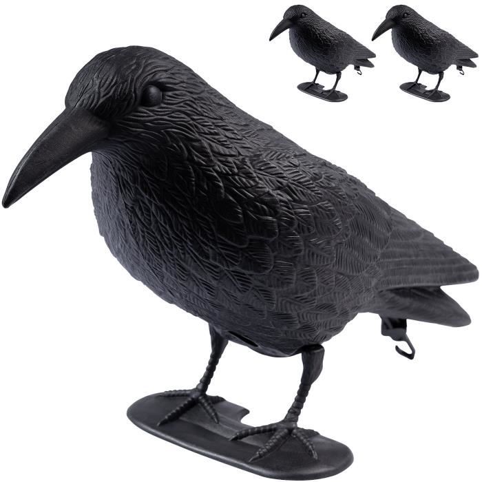 Lot de 3 Corbeaux factices ARTECSIS - Corbeau Anti-Pigeon Leurre de jardin Corbeau en Plastique Noir - Répulsif oiseaux Appelant