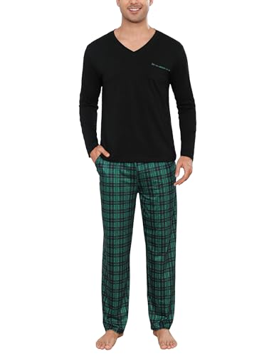 Bresdk Ensembles de Pyjama Homme Long Coton Pijamas Hiver 2 Pièce Vêtements de Nuit Chaud et Doux, Vert, M