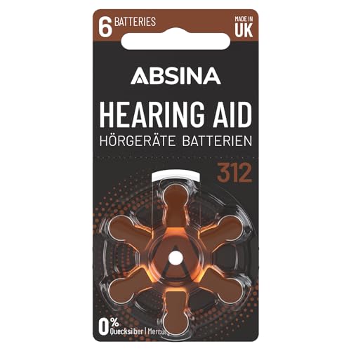 ABSINA 6X Piles auditives 312 avec Film de Protection Facile à saisir - Pile 312 Appareil auditif Zinc air avec 1,45V - Piles 312 pour Appareil auditif, sonotone, amplificateur de Son