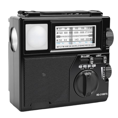 Tosuny Radio Portable AM FM SW avec Bluetooth, Chargement Solaire et Emplacement pour Carte TF, Radio à Piles Rechargeables 1200 MAh avec Lampe de Poche, Grands Boutons, Réglage