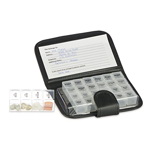 Relaxdays Pilulier, 7 Jours, 4 Compartiments, boîte à pilules, médicaments, semainier, Matin, midi, Soir et Nuit, Noir