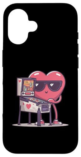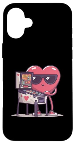 Pinball Heart Arcade Game Lunettes de Soleil rétro Saint-Valentin Coque pour iPhone 16 Plus
