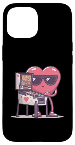 Pinball Heart Arcade Game Lunettes de Soleil rétro Saint-Valentin Coque pour iPhone 15