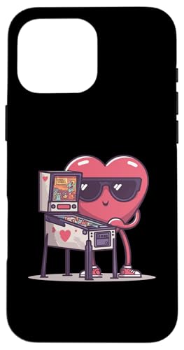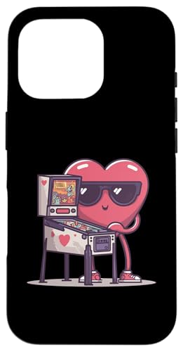 Pinball Heart Arcade Game Lunettes de Soleil rétro Saint-Valentin Coque pour iPhone 16 Pro Max