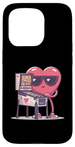 Pinball Heart Arcade Game Lunettes de Soleil rétro Saint-Valentin Coque pour iPhone 15 Pro