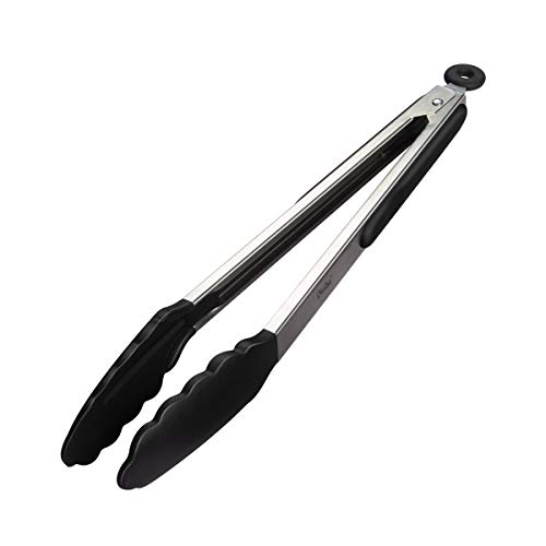 iNeibo Pince Cuisine Professionnel, Pince Barbecue en Acier Inoxydable et Silicone Alimentaire, Pince de Cuisine Résistant à la Chaleur- 30 cm Noir