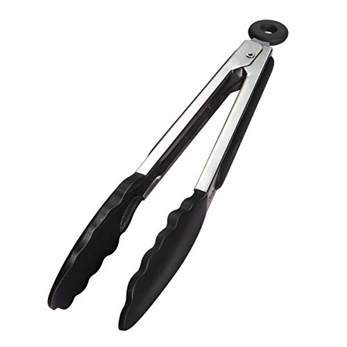 iNeibo Pince Cuisine Professionnel, Pince Barbecue en Acier Inoxydable et Silicone Alimentaire, Pince de Cuisine Résistant à la Chaleur- 23 cm Noir