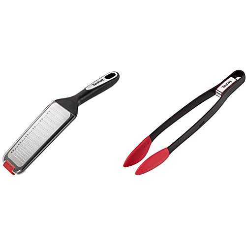 Tefal K2070714 Ingenio Râpe à fromage à Main à deux lames ustensile de cuisine résistant noir et rouge sans bisphénol A avec insert en silicone & INGENIO ACCESSOIRES Pince à aliments