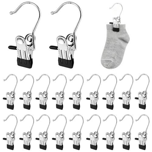 DIYCUT 20 Pièces Pinces à Linge avec Crochets, Pince a Linge INOX de Suspension de Bottes, Cintre Pince avec Crochet Rotatives à 360° en Métal Noir, pour Chaussettes, Chaussures et Chapeaux